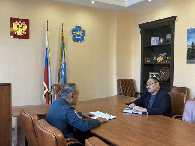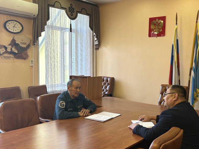 Рабочая встреча председателя Комитета Верховного Хурала Республики Тыва Аяса Санчата и и.о. руководителя Службы ГО и ЧС Республики Тыва Андрея Сата
