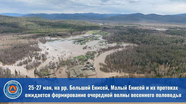 25-27 мая, на рр. Большой Енисей, Малый Енисей и их протоках ожидается формирование очередной волны весеннего половодья